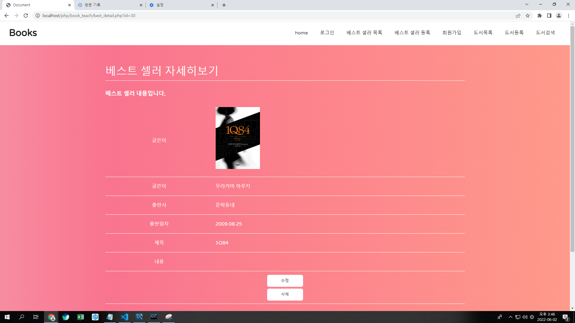 1) 베스트 셀러 등록, 수정, 삭제