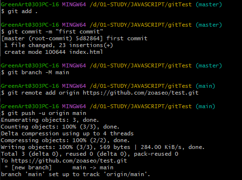 git commit -m "first commit"