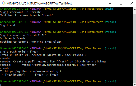 git commit -m "fresh commit"