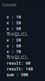 // 세개의 숫자 (x, y, z)를 더하고 짝수인지 홀수인지 알려주는 함수