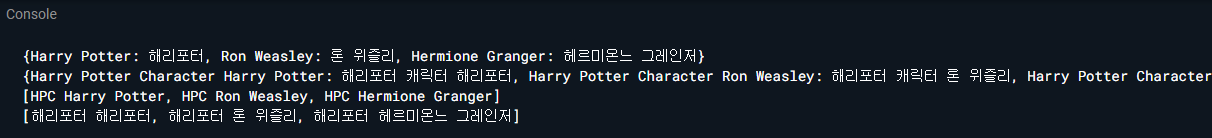 final values = harryPotter.values.map((x) => '해리포터 $x').toList();